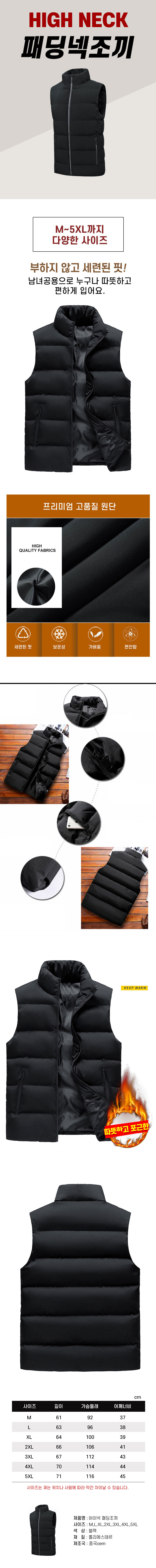 | 제품소재 | 남녀공용 데일리 하이넥 패딩조끼 등산 낚시 작업조기 빅사이즈 조끼 |